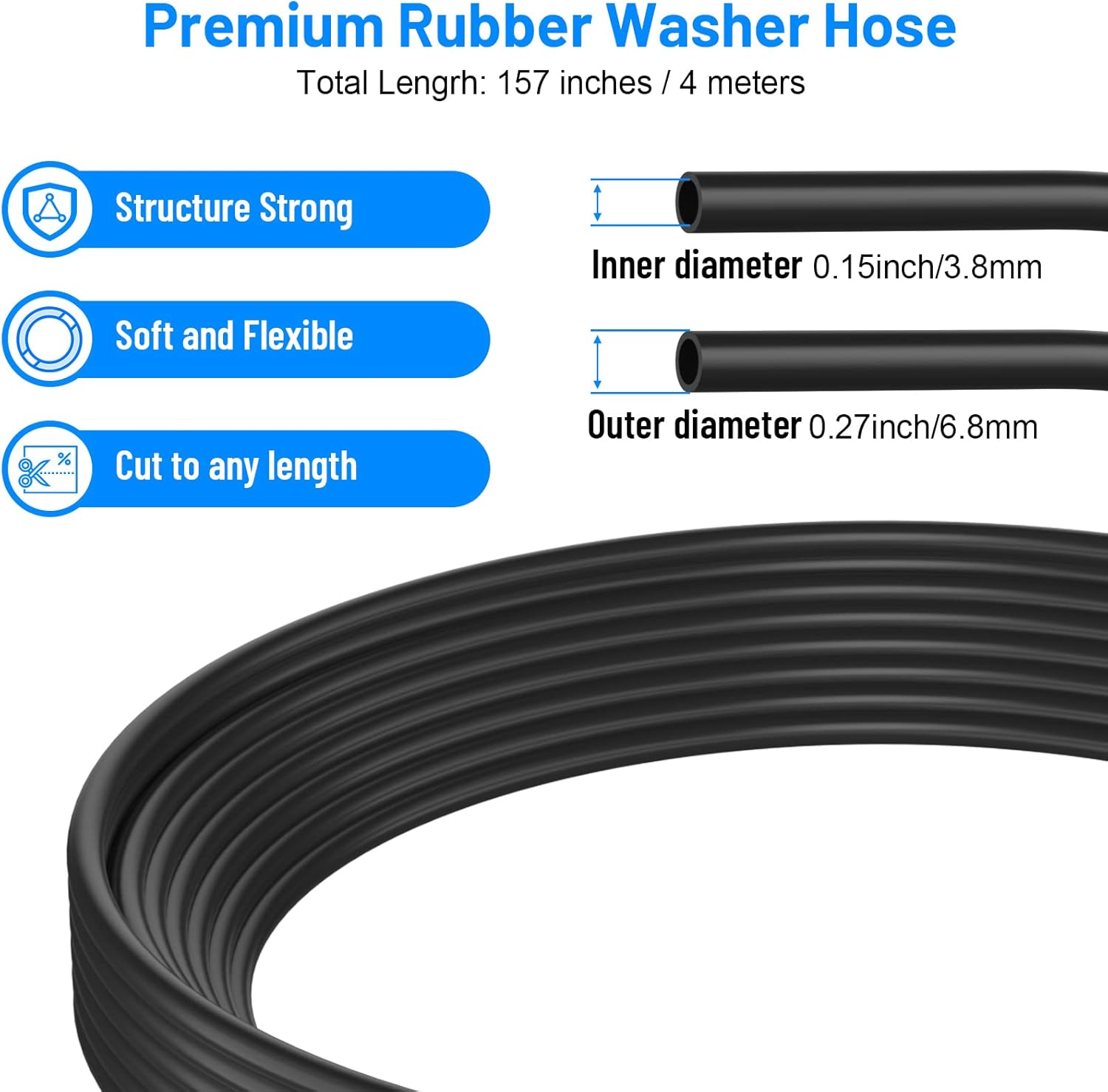 – 157 Inches/4m Windshield Washer Hose