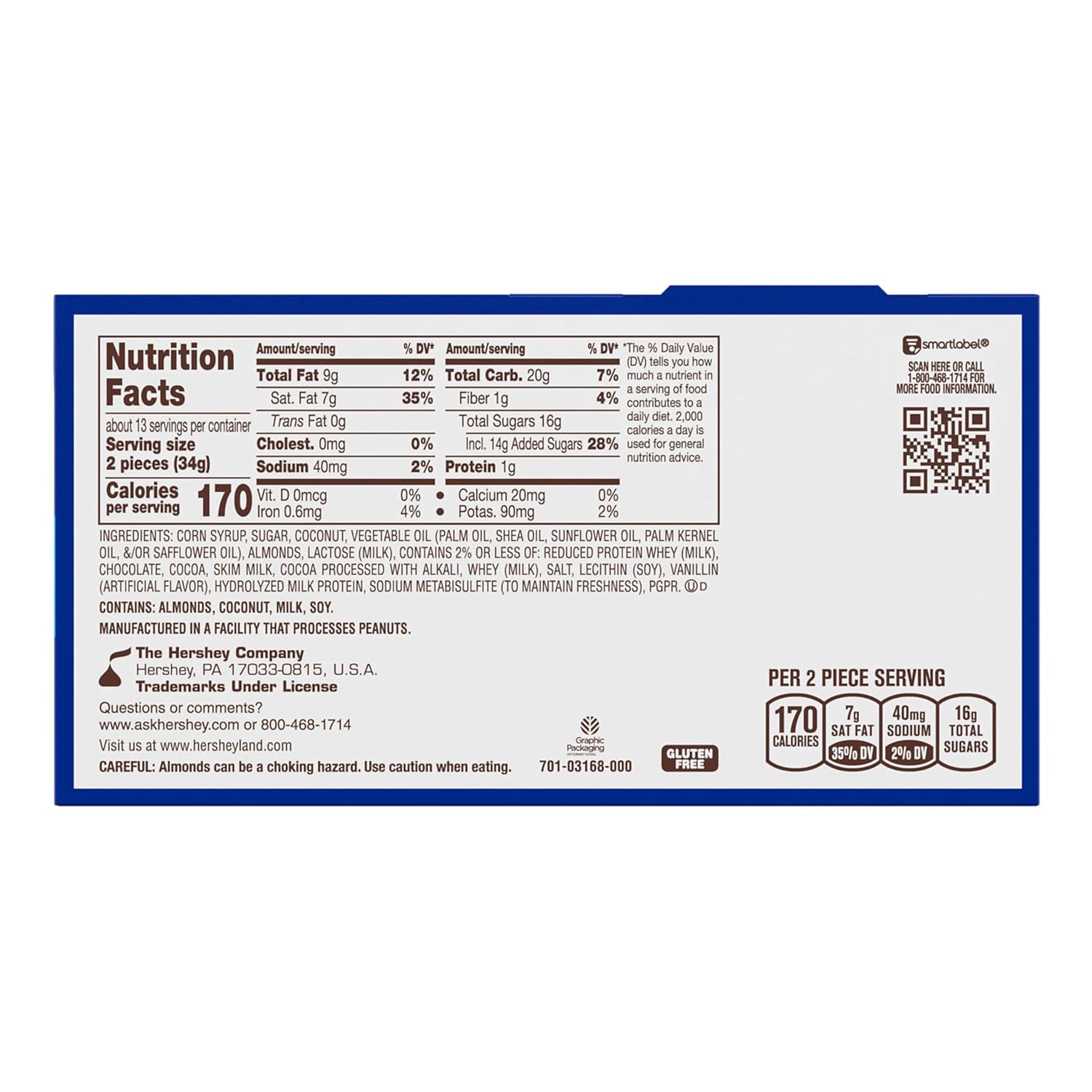 Includes 25 individually wrapped kosher and gluten free ALMOND JOY coconut candies in a re-closeable and stackable box to protect your snack size candy treats