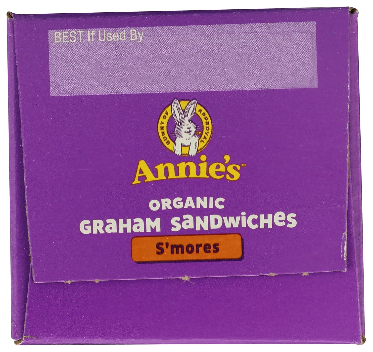 Get ready to devour the yummiest part of camping, anytime. Grab a package of Annie’s Organic Graham Sandwich Cookies in a delicious s’mores flavor. They’re made with chocolate graham on one side, honey graham on the other, with marshmallow-flavored crème on the inside. Everybunny will come hopping for these organic s’mores cookies that will remind you of the great outdoors, wherever you are. You’ll taste the honey and chocolate graham crackers and marshmallow flavors in every bite. Add some joy and hoppiness to your family’s day. Annie’s makes products in over 20 family-friendly categories — from fruit-flavored snacks and cereal to mac & cheese. For busy bunnies and families on the go, we help make life a little easier and more delicious by sweetening-up packed lunches or by adding to a savory, yummy dinner. Annie’s is devoted to spreading goodness through nourishing, tasty foods and kindness to the planet. Made with Goodness: S’MORES GRAHAM SANDWICHES: Organic graham crackers in chocolate and honey flavors with marshmallow-flavored crème YUMMY SWEET TREAT: Our s’mores cookies are a yummy sweet treat for everybunny, anytime MADE WITH GOODNESS: No artificial flavors or synthetic colors CERTIFIED ORGANIC: Made with non-GMO, certified organic ingredients for hoppy parents and kids GOOD EATS: Annie’s is a purpose-driven brand believing that together, we can leave behind a healthier planet for our kids BOX TOPS FOR EDUCATION PARTICIPATING PRODUCT: Give back to schools with Annie’s. Download the Box Tops App to learn more & start earning cash for schools in need today. Ingredients Organic Enriched Wheat Flour (organic wheat flour, niacin, iron, thiamin, riboflavin, folic acid), Organic Cane Sugar, Organic Palm Oil, Organic Whole Wheat Flour (graham flour), Organic Invert Cane Syrup, Organic Cocoa Powder, Organic Honey, Organic Whole Corn Flour, Organic Semisweet Chocolate Chips (organic cane sugar, organic unsweetened chocolate, organic cocoa butter, organic vanilla extract), Organic Natural Flavor, Calcium Carbonate, Organic Canola Oil, Sodium Bicarbonate, Sea Salt, Ammonium Bicarbonate, Organic Soy Lecithin, Mixed Tocopherols (vitamin E) to Protect Flavor. CONTAINS SOY, WHEAT; MAY CONTAIN MILK, EGG, AND COCONUT INGREDIENTS. Preparation Ready to Eat Nutrition Facts Serving Size2 Sandwiches (38g) Nutrition Facts Nutrient Name As Packaged Calories 180 % Daily Value * Total Fat 8g10% Saturated Fat 4g19% Trans Fat 0g Cholesterol 0mg0% Sodium 85mg4% Potassium 0mg0% Total Carbohydrate 27g10% Dietary Fiber <1g4% Total Sugars 15g Incl. Added Sugars 15g30% Protein 1g Vitamin D 0mcg0% Calcium 180mg15% Iron 0.9mg6% *The % Daily Value (DV) tells you how much a nutrient in a serving of food contributes to a daily diet. 2,000 calories a day is used for general nutrition advice. Nutrition Facts Ingredients, nutrition facts, and allergen statements can change. Always refer to the actual package for the most complete and accurate information.