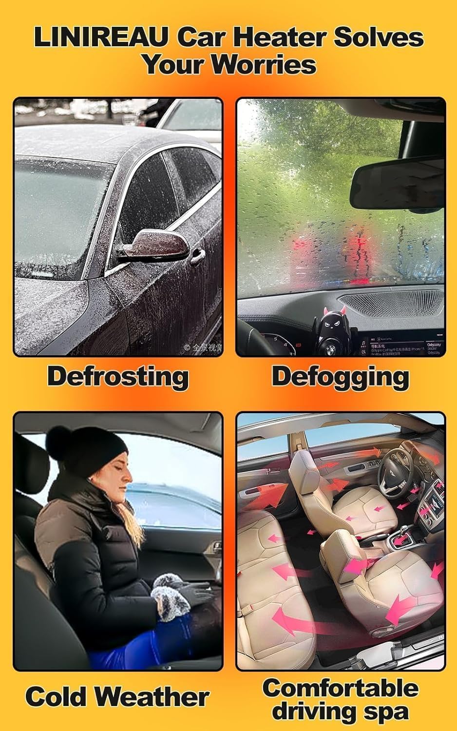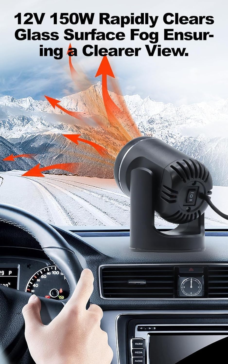 QUICKLY CLEARS FROST & FOG: This car heater features a powerful 200W design, heating up in just 30 seconds to efficiently remove frost and fog from your front, rear, and side windows, improving visibility and ensuring safe winter driving.