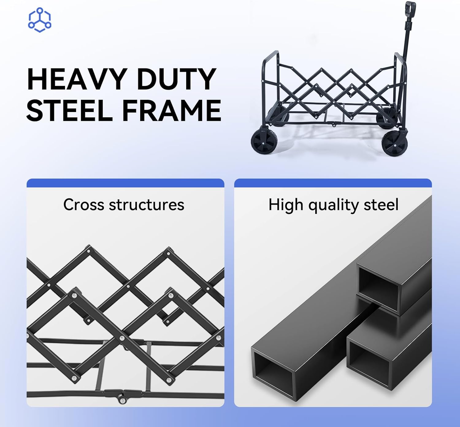 LIGHTWEIGHT AND COMPACT: If you are looking for a portable grocery wagon, TANSTRIDER would be a good choice.Our collapsible foldable wagon is designed for lightweight and compact application, only 10.8LBS, achieving effortless one-hand carrying on