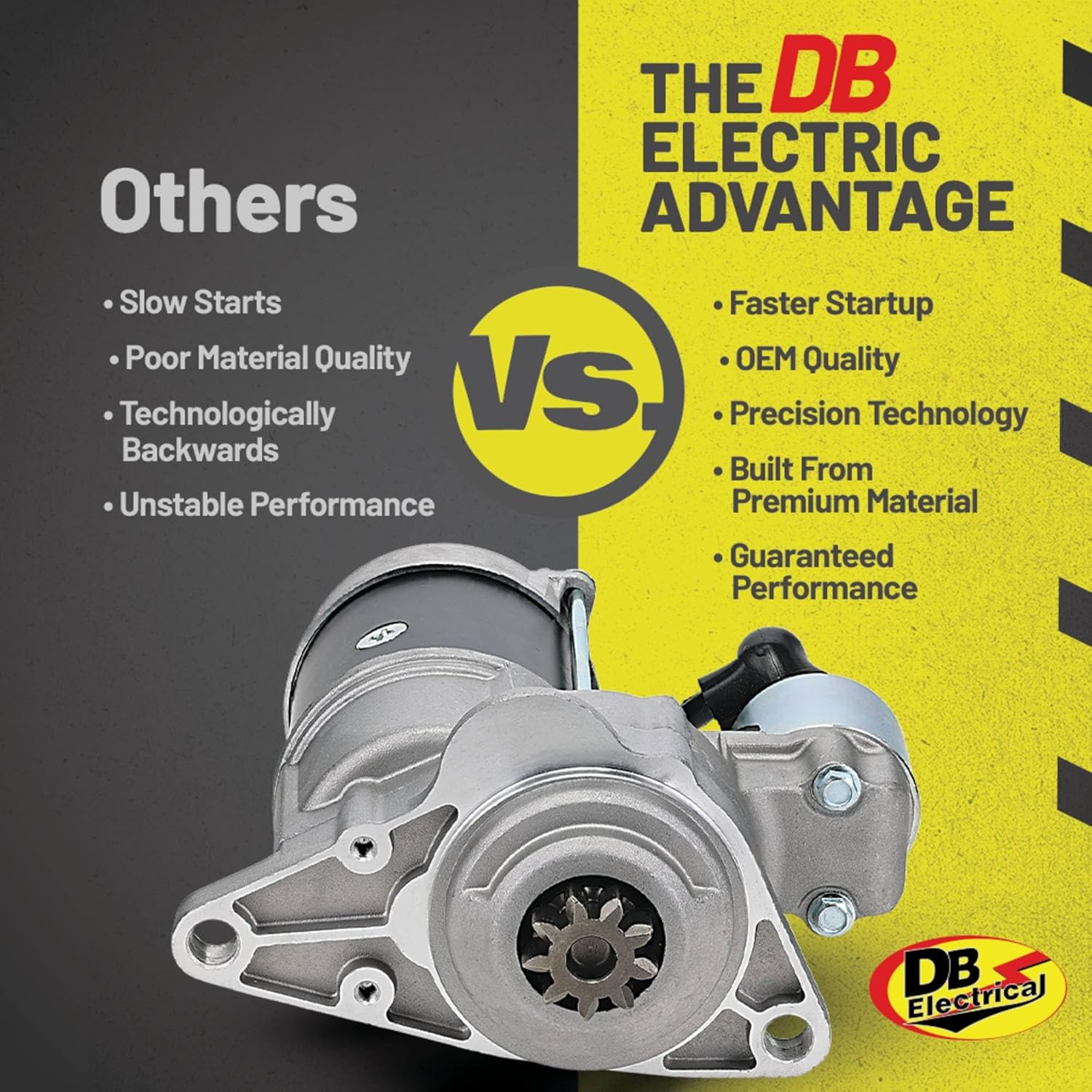 FAST ENGINE STARTER: The DB Electrical starter is designed for fast and efficient engine ignition. It has sealed housings to prevent residue buildup, along with upgraded copper and silver contacts for enhanced performance.