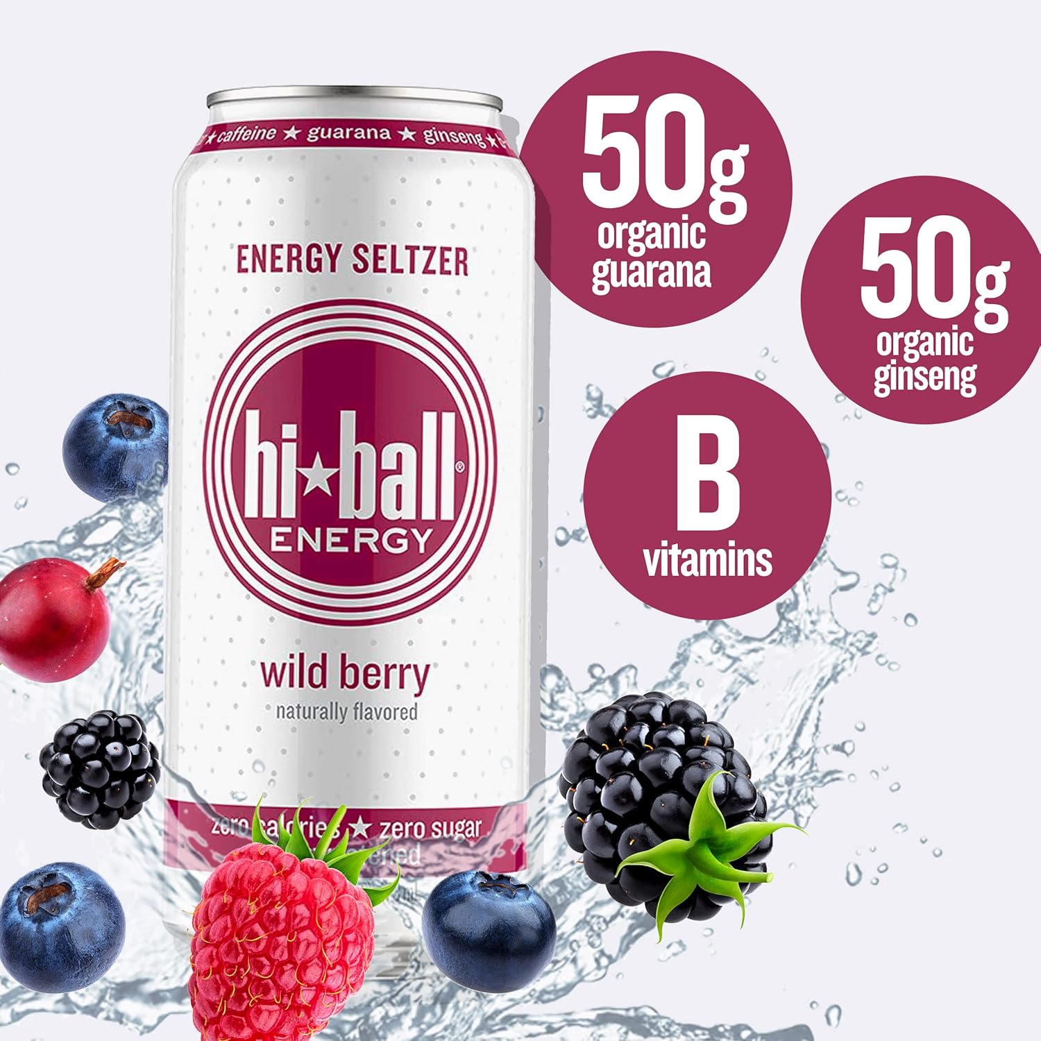 Hiball Energy Wild Berry sparkling Energy Water is a zero sugar and zero calorie energy drink. This Wild Berry sparkling water is made with organic Caffeine, ginseng, and Guarana. It provides the perfect boost when you’re looking for good energy. Not only is this zero sugar drink full of B vitamins, but it’s made without preservatives, artificial sweeteners, and taurine. This 8 pack of sparkling Energy Water cans is great for sharing or for stocking up. When it comes to beverages, Hiball Energy keeps it simple and straightforward to help you choose something that makes you feel good.