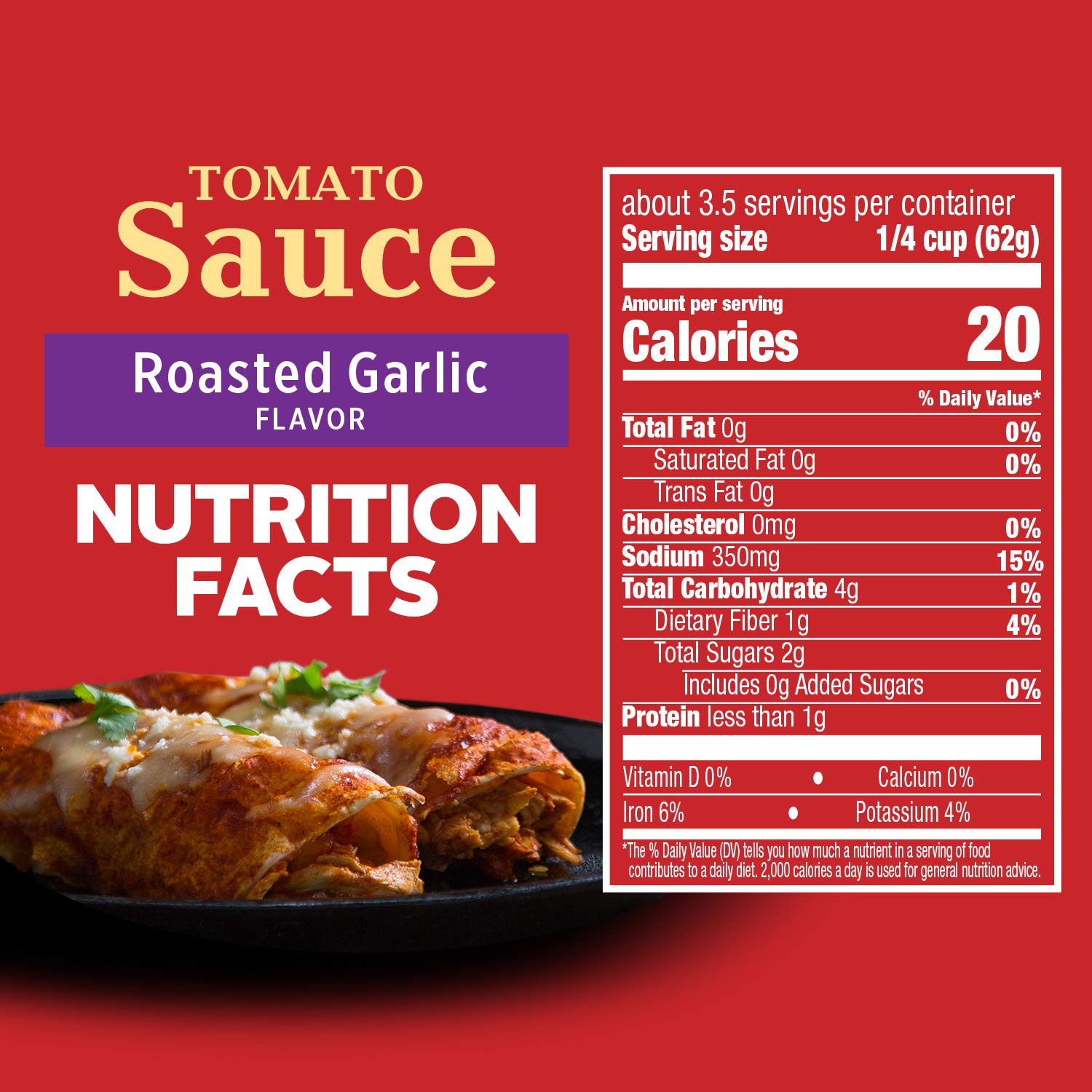 Contains 8 oz of sauce; roughly 3.5 servings per can; 20 calories per serving