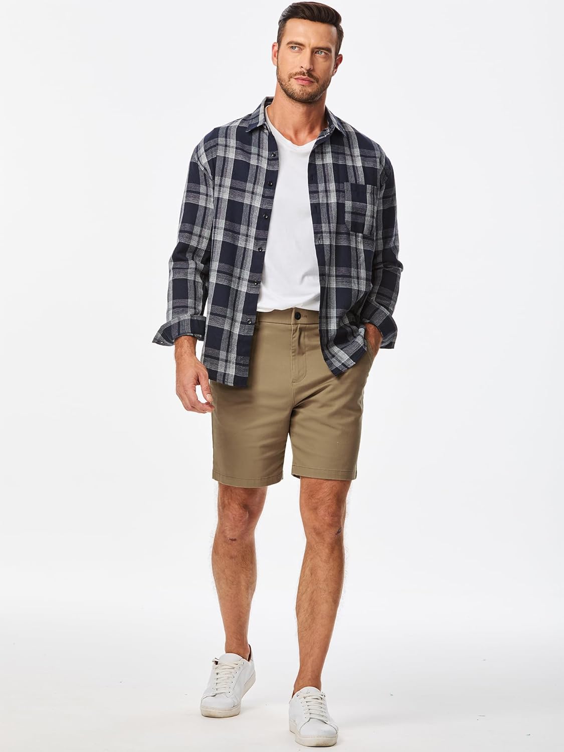 JMIERR Men’s Classic-Fit 7″ Chino Short Summer Stretch Waist Cotton Twill Casual Dress Shorts with Pockets