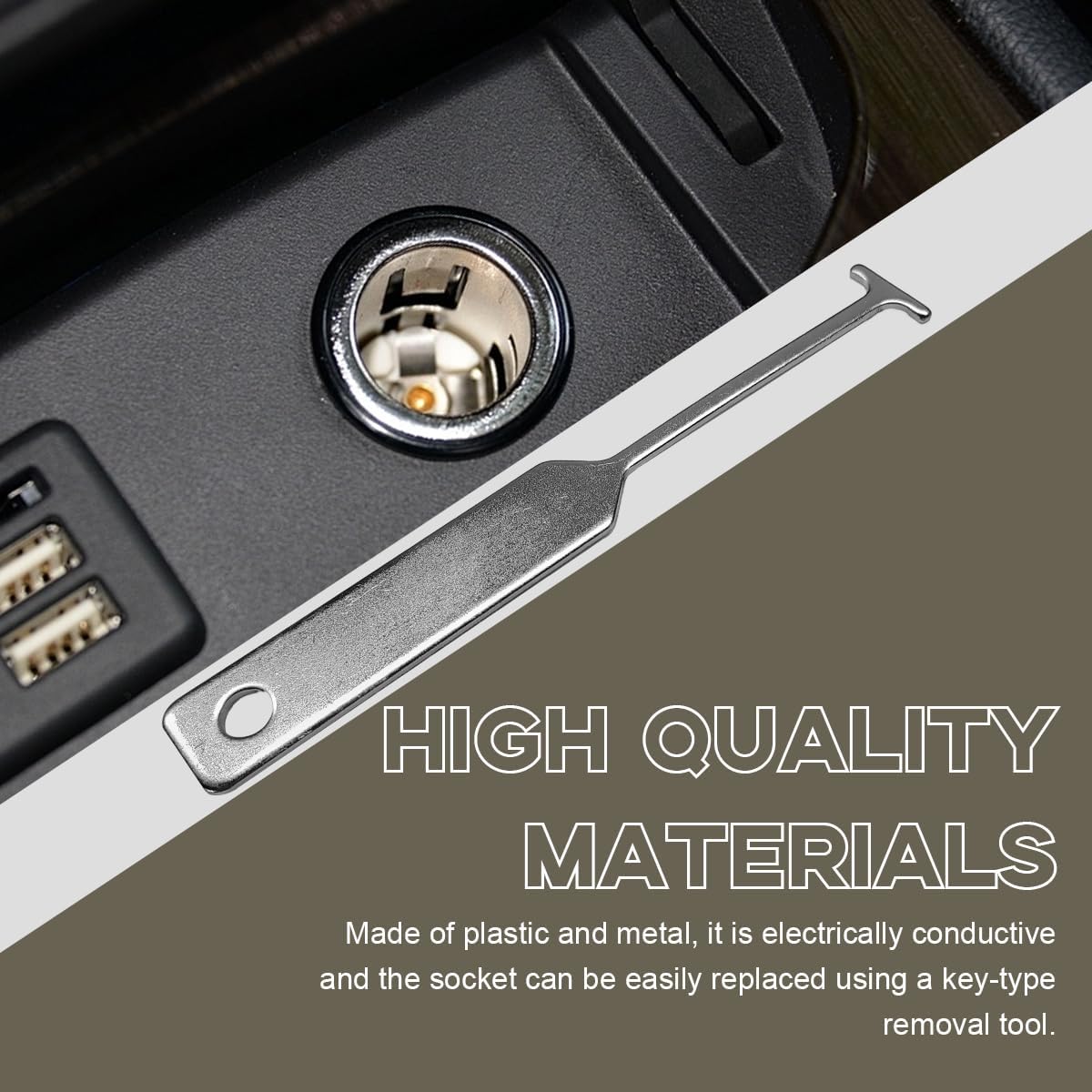 【Efficient Removal】: The removal tool simplifies the process of removing and replacing lighter sockets. The tool features a flat head with a width of 0.8″ at the top and a T-shaped end at the tail, allowing it to fit securely into the lighter socket for efficient and precise removal.