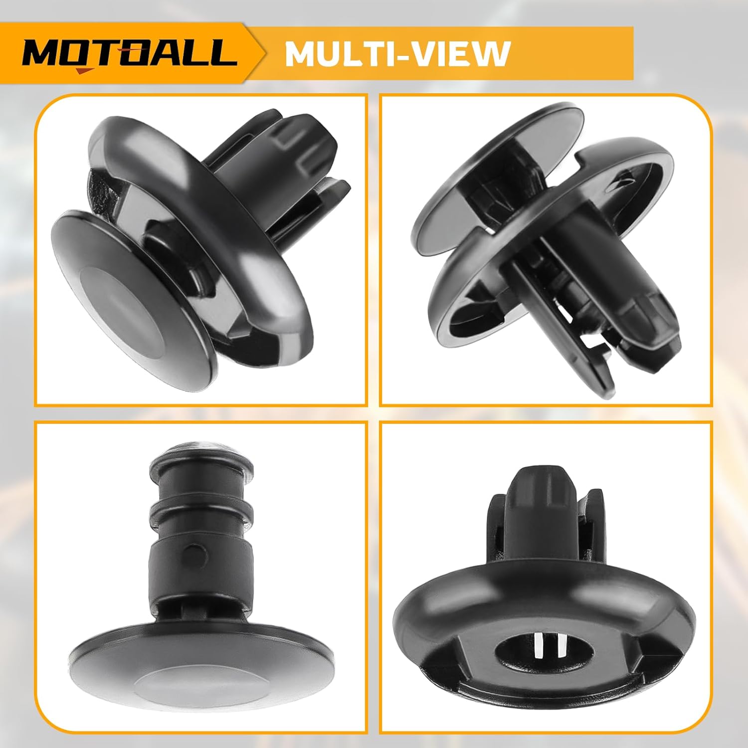 Widely used for radiator yoke, trim panel, door trim, door panel, bumper, car fender, side skirt, grille, engine cover and splash guard shield retainers rivet clips replacement