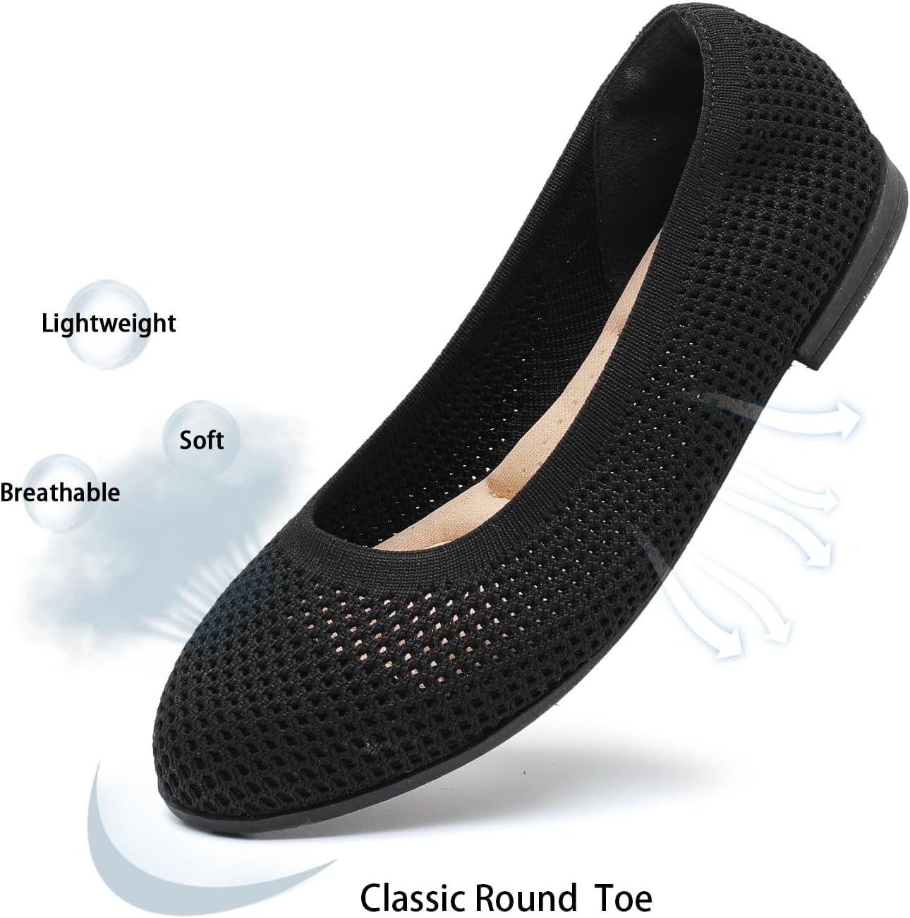 Saidoteto Women’s Ballet Flats – Comfortable Round Toe Slip-On Walking Shoes, Elastic Knit Dress Flats for Casual & Dressy Wear