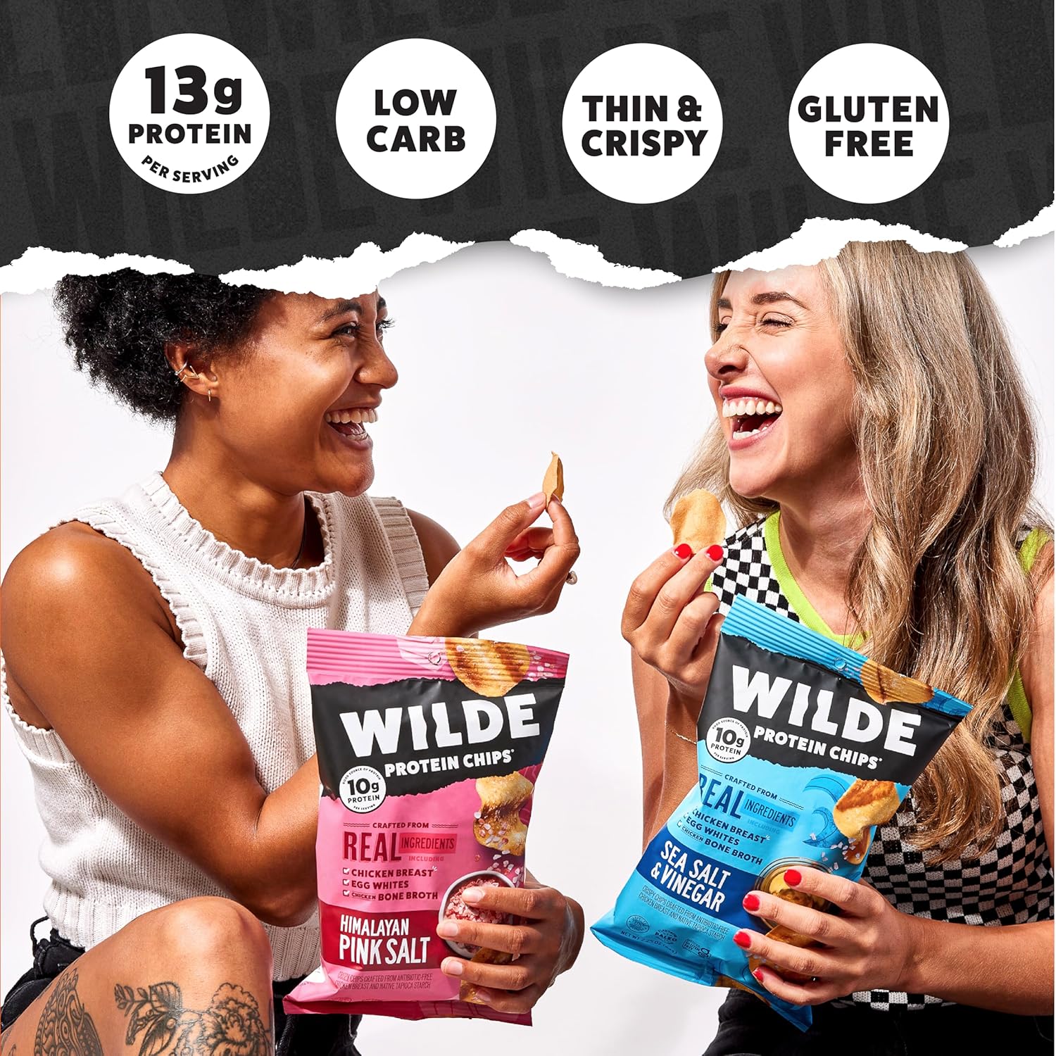 THIN, CRISPY, AND TANGY: Wilde Protein Chips are just like your favorite potato chips but without all of the carbs! Made from 100% all-natural chicken breast with the same texture and crunch of a potato chip.