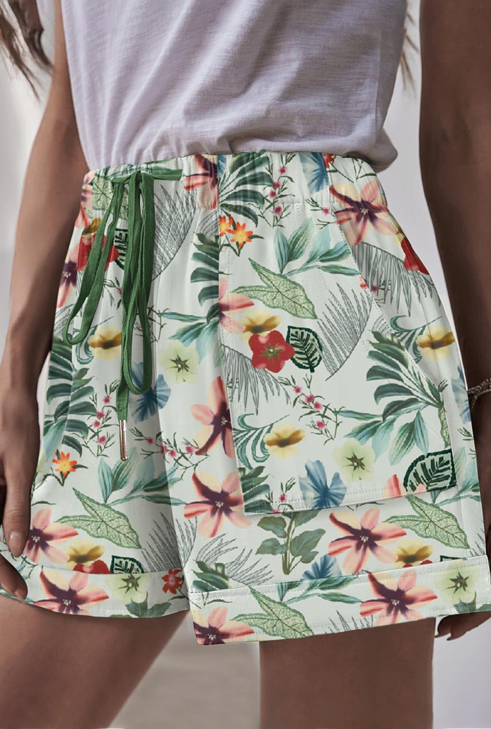 Womens Drawstring Shorts Summer Elastic Waist Casual Lightweight with Pockets